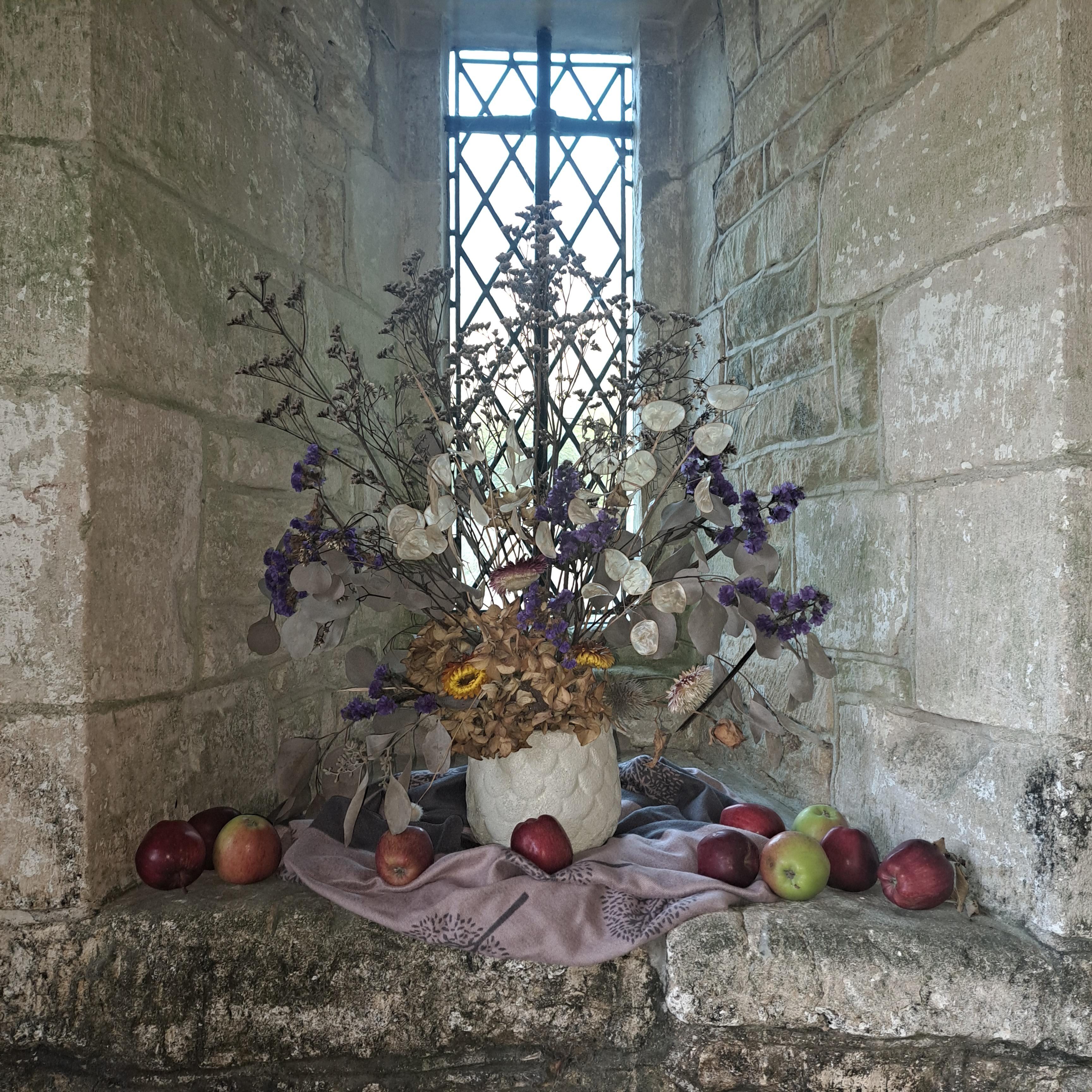 Part of the event was Bex Partridge’s stunning installation of dried flowers and foliage in the chapel called ‘The Beauty is in the Decay”.